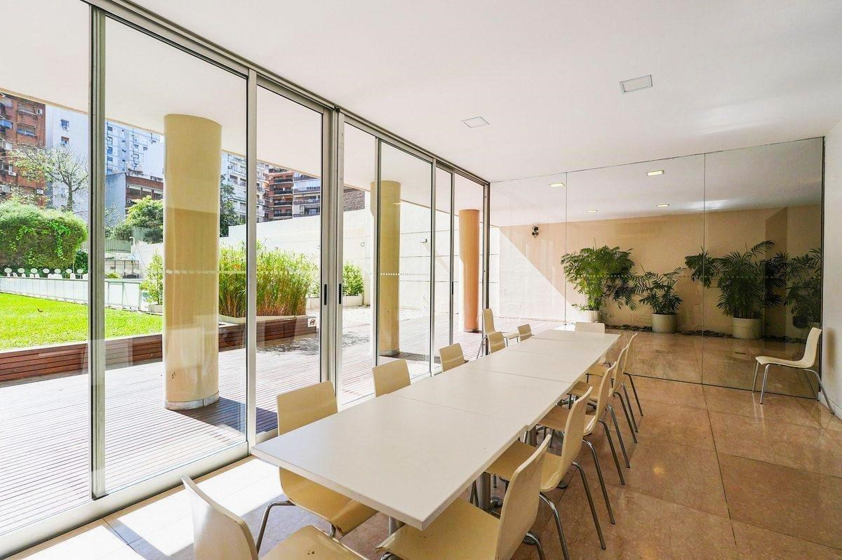 DEPARTAMENTO 3 AMBIENTES EN LAS CAÑITAS – FULL AMENITIES – COCHERA Y BAULERA Superficie total: 112 m² | Cubierta: 101 m² Antigüedad: 18 años Excelente departamento de 3 ambientes, amoblado a nuevo (opcional), ubicado en una de las zonas más buscadas de Buenos Aires: Las Cañitas, a sólo 300 metros de los lagos de Palermo. Ofrece una distribución cómoda y funcional: Entrada principal y de servicio. Hall de recepción con toilette. Cocina independiente con muebles bajo mesada y alacenas, doble pileta (cocina y lavadero) y espacio para lavarropas. Desayunador y baño de servicio. Living-comedor amplio con salida a balcón corrido y hermosa vista abierta al parque, con gran luminosidad. Todo pisos de parquet. Dormitorio principal en suite con placard y baño completo. Segundo dormitorio con placards. Segundo baño completo. Confort: Calefacción por losa radiante. Aires acondicionados tipo Split frío/calor en todos los ambientes. Cochera fija. Baulera Iluminacion bajo consumo. Edificio de categoría con FULL AMENITIES: ? Vigilancia 24 hs ? Pileta descubierta y solárium con deck ? Gimnasio totalmente equipado ? Sauna y jacuzzi ? Parrilla al aire libre ? SUM con cocina equipada ? Laundry ? Amplio jardín en planta baja